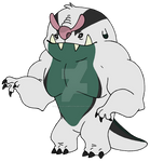 A small orange dinosaur-like experiment with a purple nose tiny gold-tipped ears gold markings on his back and spots around his eyes and a thick short tail and legs. Designed to drain batteries. This is an On Demand purchase which means your digital download will be ready within 72 hours of purchase.